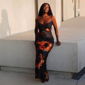 Women’s Fashion Sling Printed Slim Dress