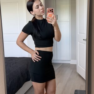 Women's Ruched Bodycon Mini Skirt Elastic Low Waisted Skirt