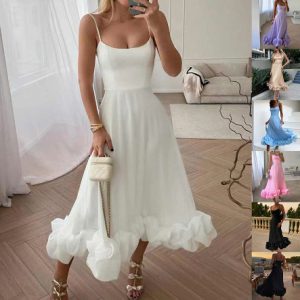 Women’s Backless Ruffles Irregular Dress Summer Fashion Evening Party Club Split Suspender Maxi Dresses Clothing