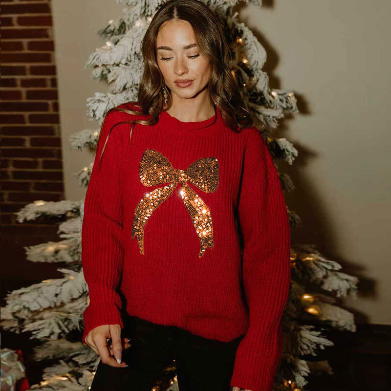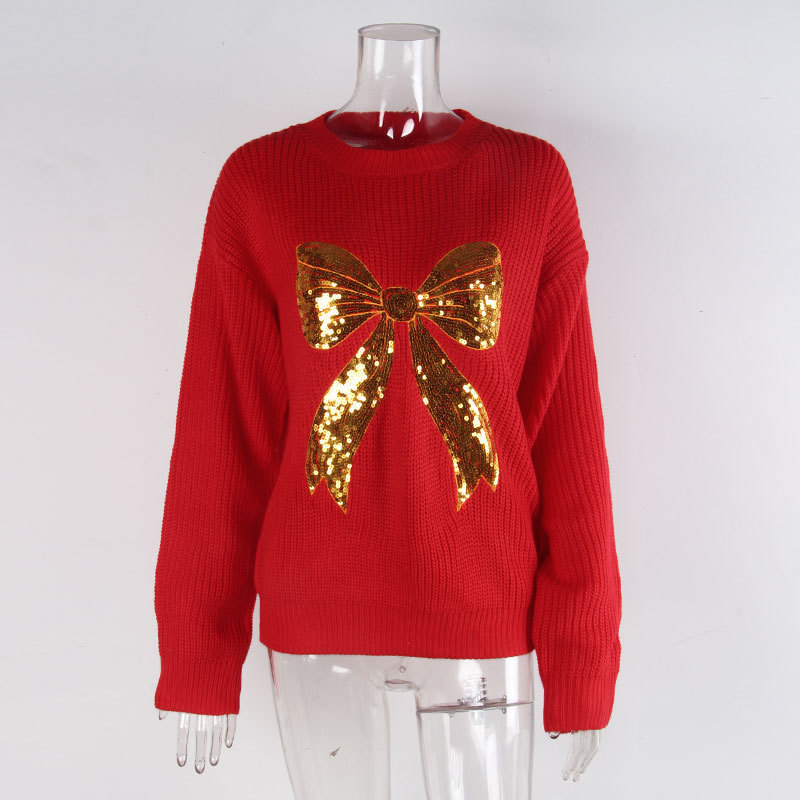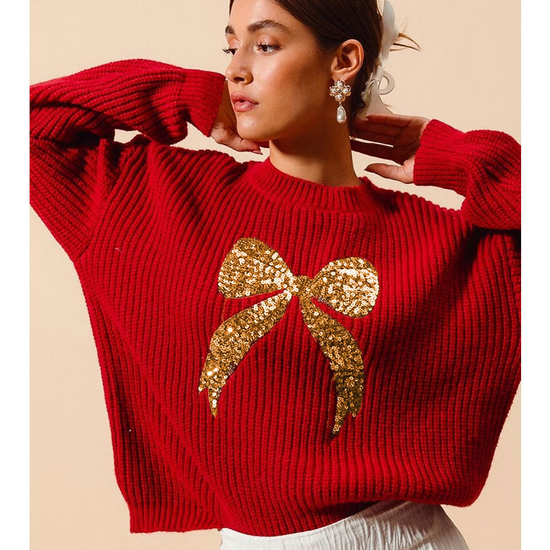 Loose-fitting Sweater With Beaded Embroidery And A Bow