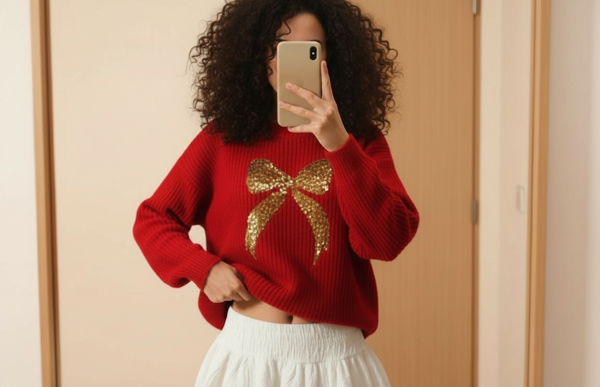 Be the first to review “Loose-fitting Sweater With Beaded Embroidery And A Bow”