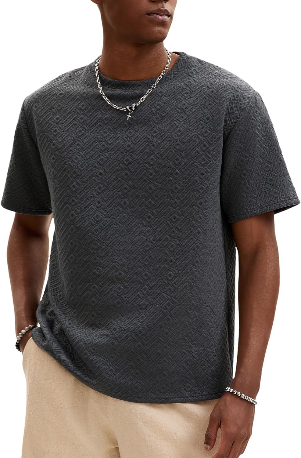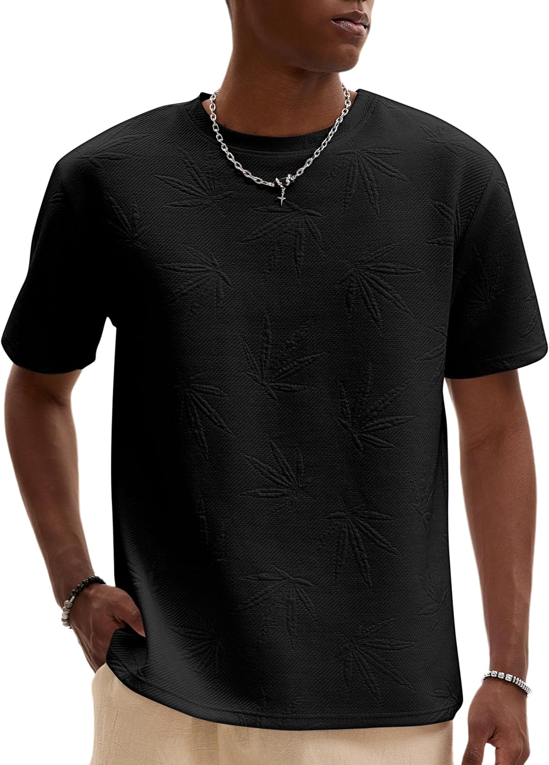 Textured Style:In a solid color with a delicate jacquard texture,this T-shirt is wrinkle-resistant,easy to wear,and adds dimension to your basics,making it an effortlessly versatile piece