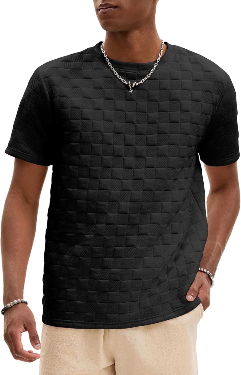 Men's T-Shirts, Casual Knit Short Sleeve Crewneck Shirts for Men Solid Textured Pullover Tees