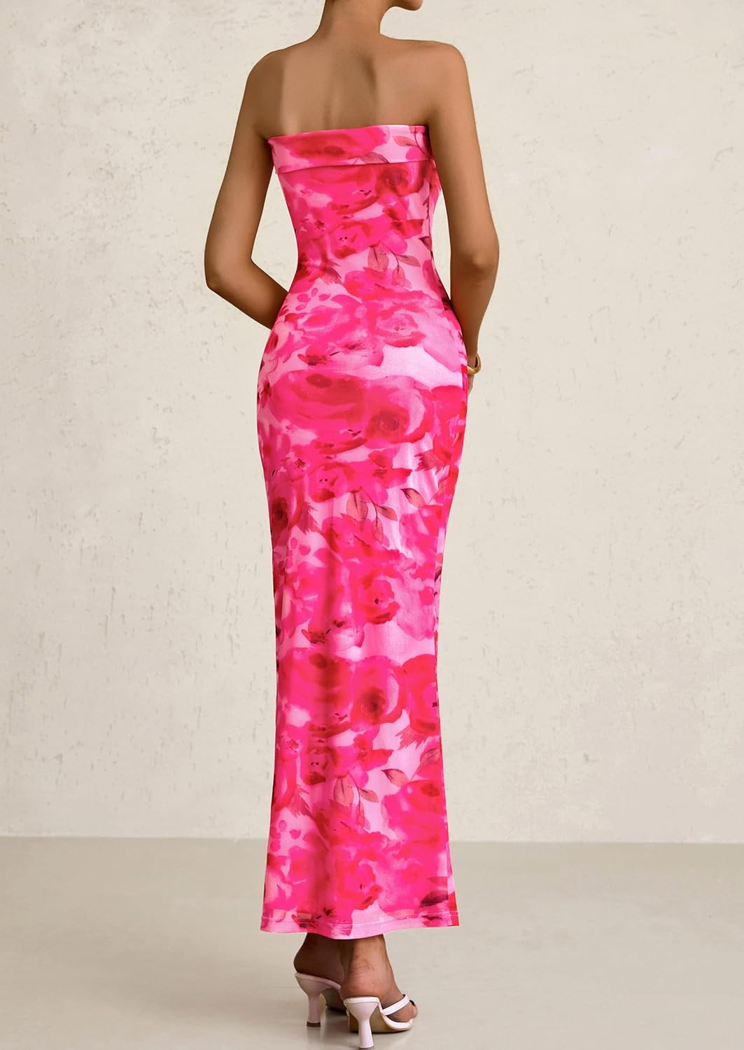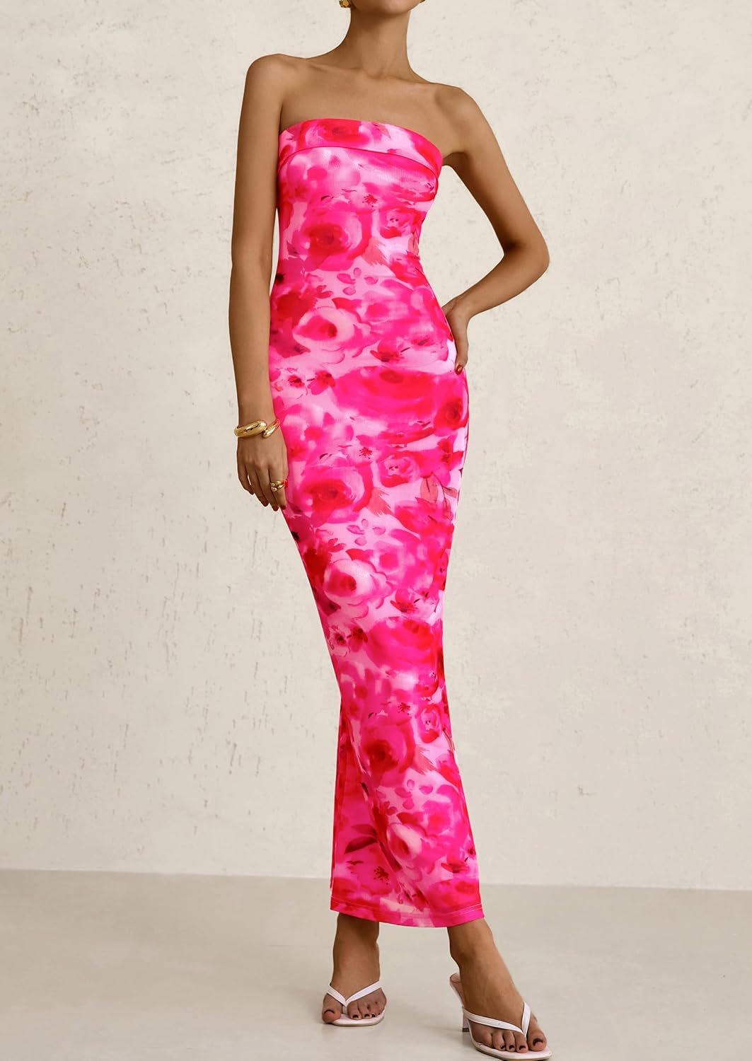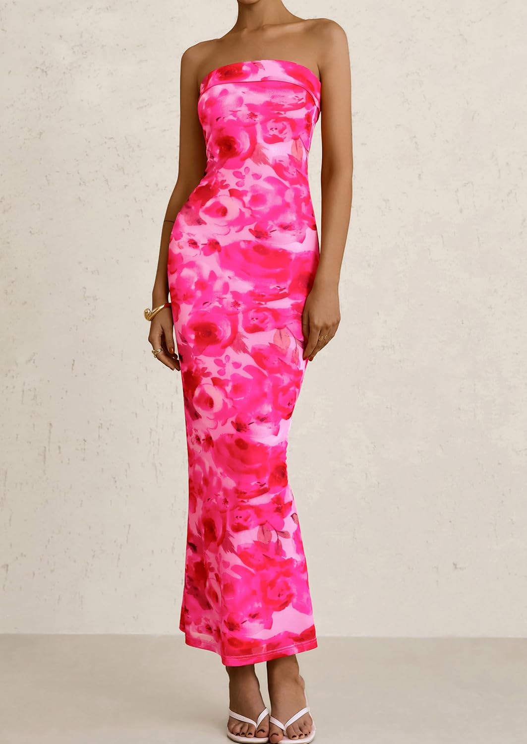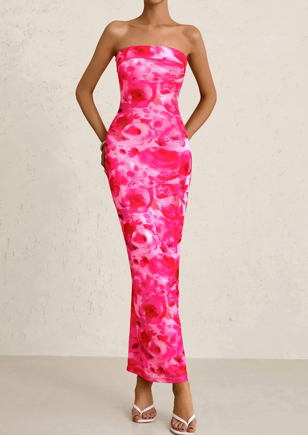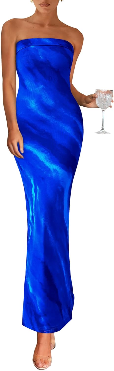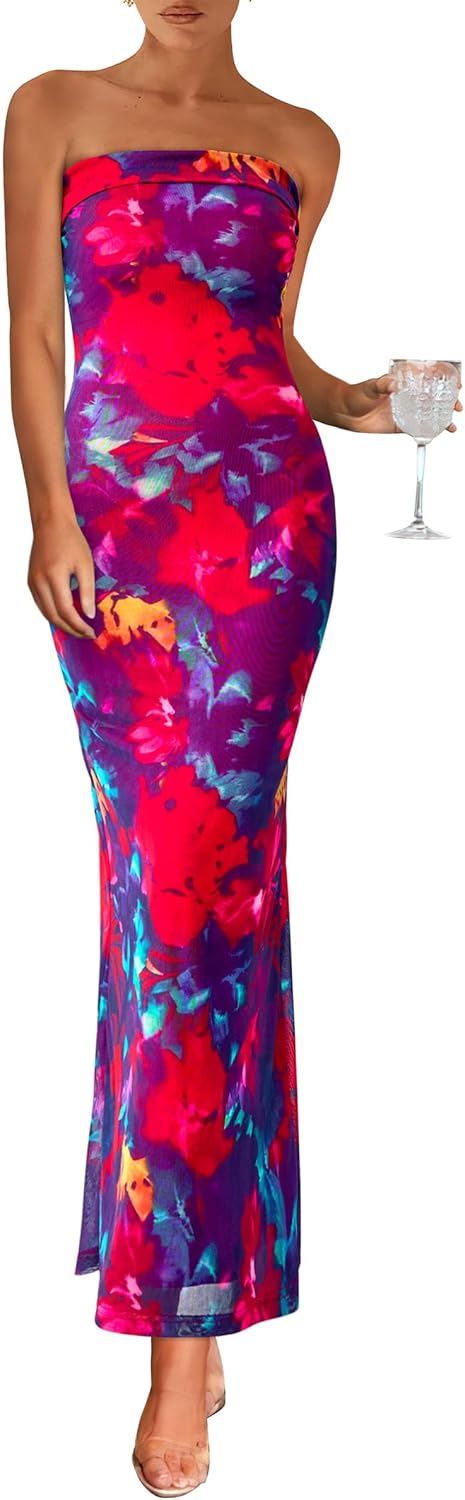 PRETTYGARDEN Womens Summer Printed Tube Maxi Dress Strapless Bodycon Sleeveless Night Out Long Dresses