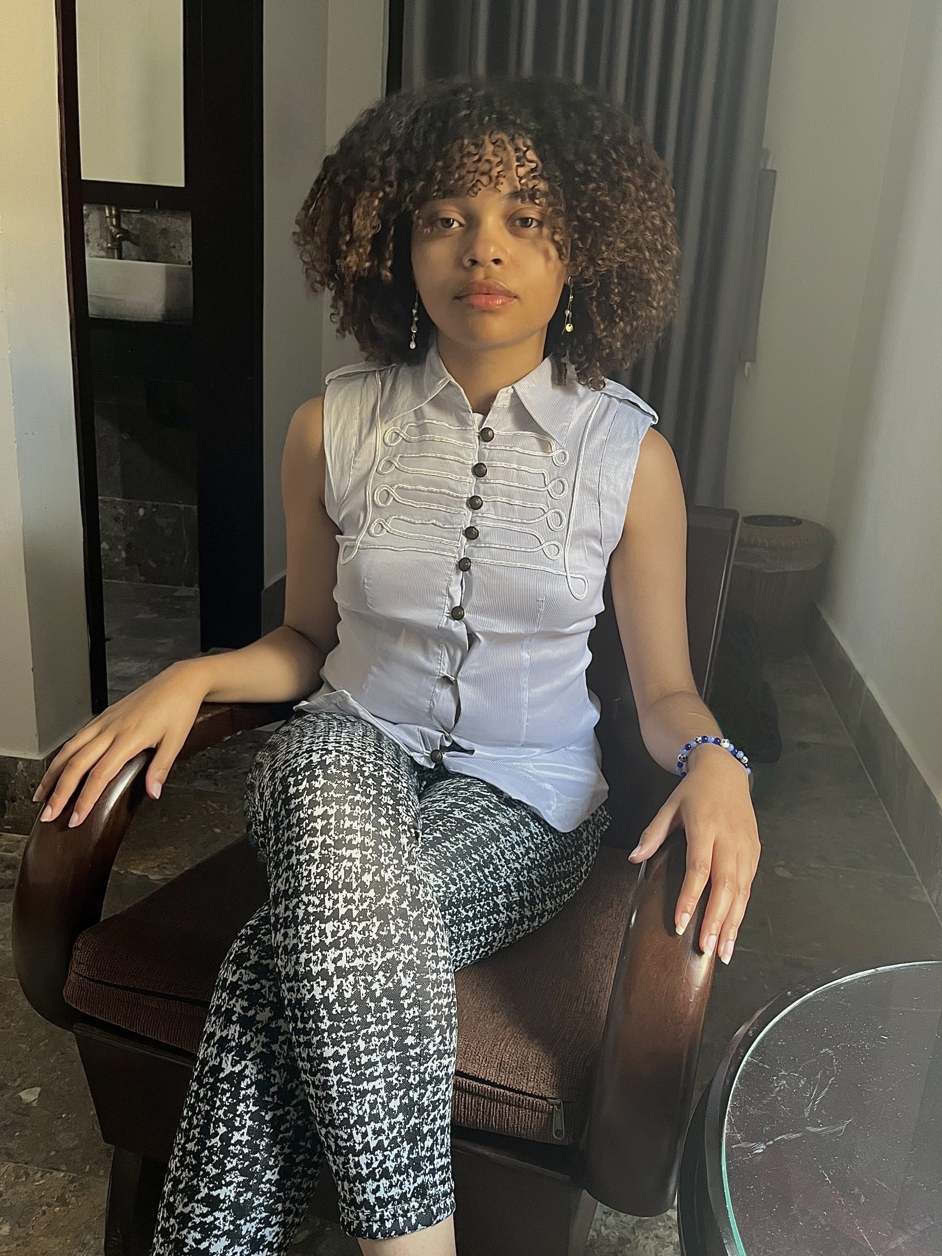 Reveal your feminine side by wearing this gray shirt with its officer-style embroidered details and sleeveless design, add originality to your outfit.