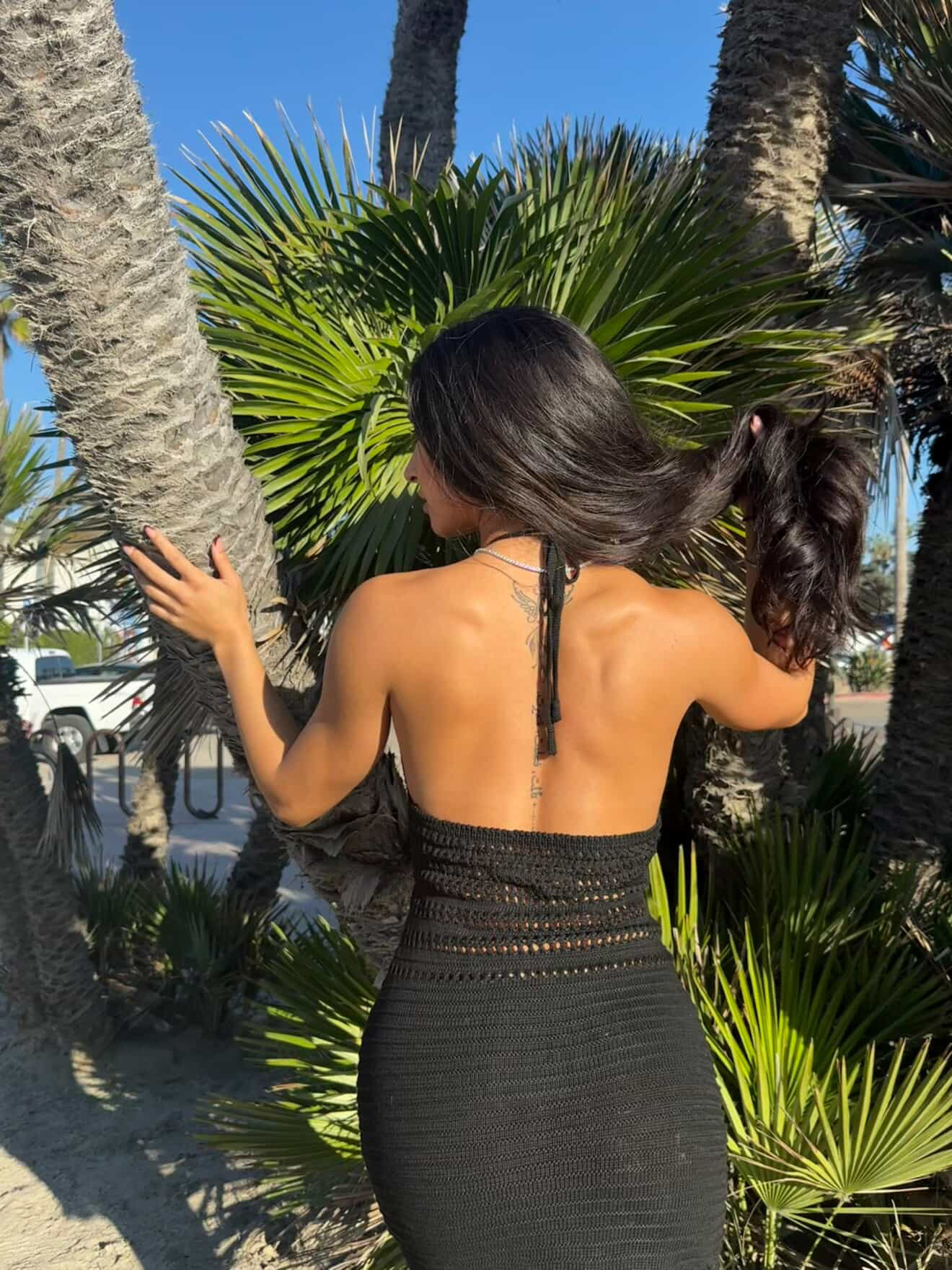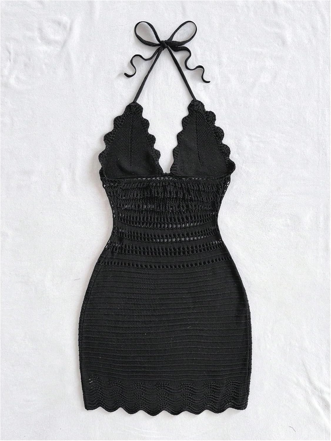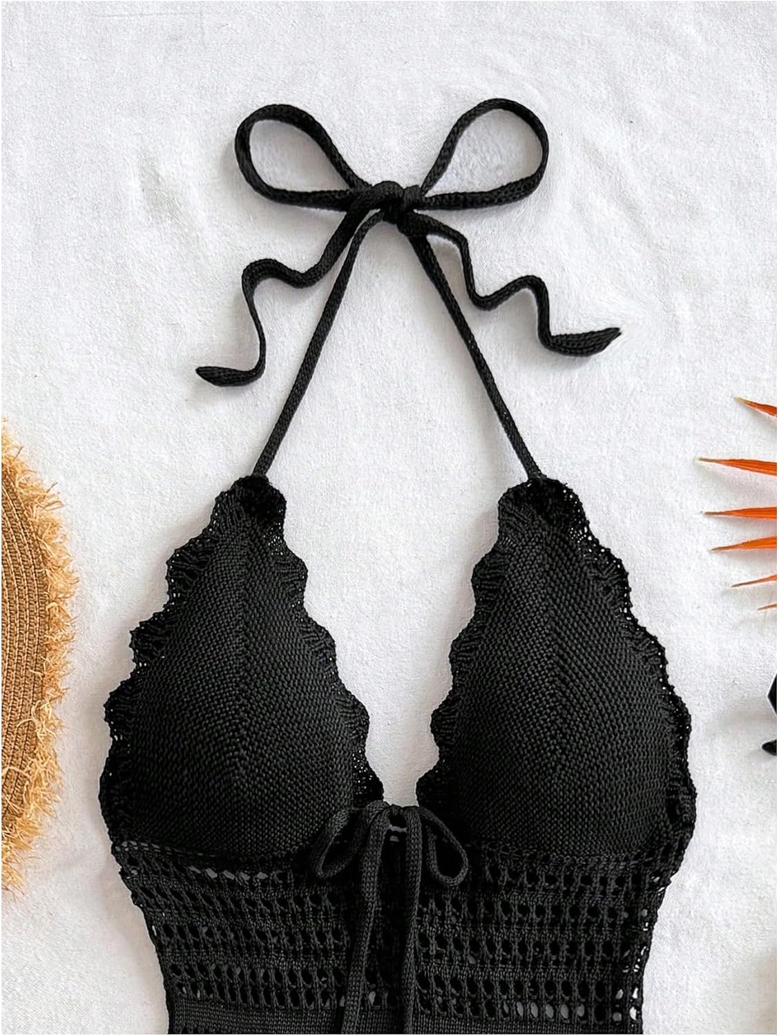 Be the first to review “Women's Crochet Halter Mini Dress Bow Backless Bodycon Knit Dresses Summer Festival Outfits”